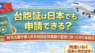 申請手続き系 台胞証は日本でも申請できる? 台胞証は日本では作れないと言われがちですが、実際には申請可能です。台湾籍の妻が駐名古屋中華人民共和国総領事館で申請した体験をもとに、必要書類や流れ、注意点を解説します。 2025.12.22 申請手続き系