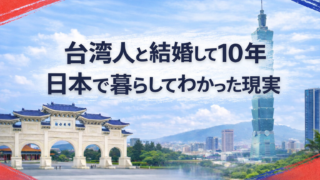 日本と台湾比較・生活系 台湾人と結婚して10年、日本で暮らしてわかった現実 台湾人の妻と結婚して10年、日本で生活し子ども3人を育てて感じた現実をまとめました。永住権と帰化の違い、親族との距離感、お金や子育てのリアルを感情論抜きで書いています。 2025.12.11 日本と台湾比較・生活系