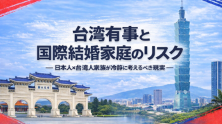 日本と台湾比較・生活系 台湾有事と国際結婚家庭のリスク ― 日本人×台湾人家族が冷静に考えるべき現実 ― はじめに|起きてほしくないからこそ、考えておく 台湾有事について語ると、どうしても感情的な議論になりがちです。 しかし、国際結婚家庭、特に日本人と台湾人の夫婦で子ども... 2025.12.17 日本と台湾比較・生活系